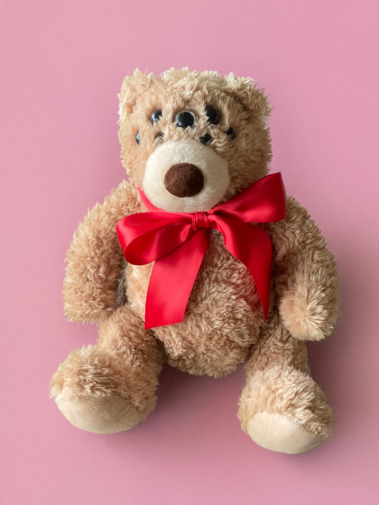 This toy is hand-sown, one of a kind, Trauma Toy made by Honeylamb!✨ they are made from up-cycled stuffed animals and dolls. They come with a gentle baby rattle in their tummies